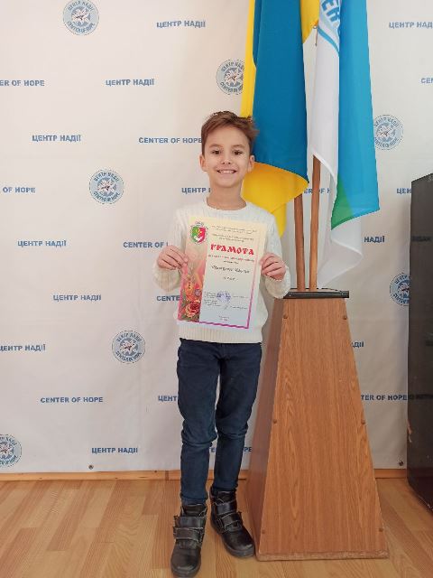 Творчий малюнок учня 3-А класу Рівненського ліцею “Центр надії” ім. Надії Маринович Максима Полюховича відібрано до участі у виставці кращих творів п’ятого “Відкритого міського конкурсу живопису імені Григорія Синиці”, що проходить у м. Кривий Ріг в 2022-2023 рр. До участі у конкурсі зголосилися учасники з 22 областей України. А саме, 975 школярів з різних куточків нашої країни долучилися до конкурсу, який цього разу відбувається в режимі онлайн. Вітаємо організаторів конкурсу, учасників та переможців!